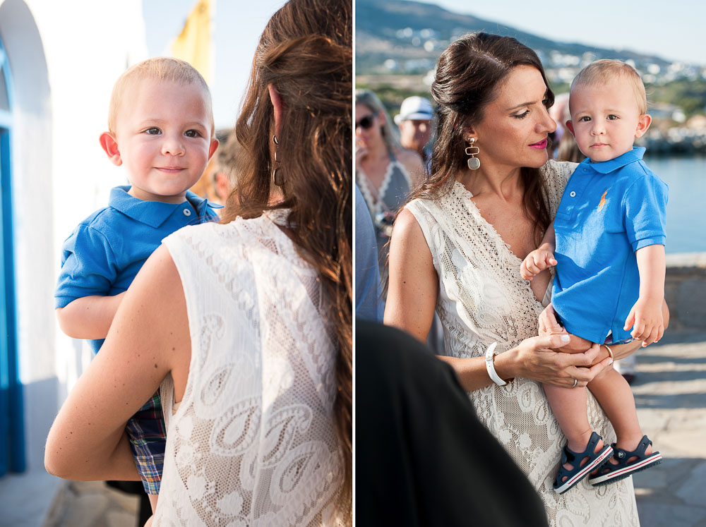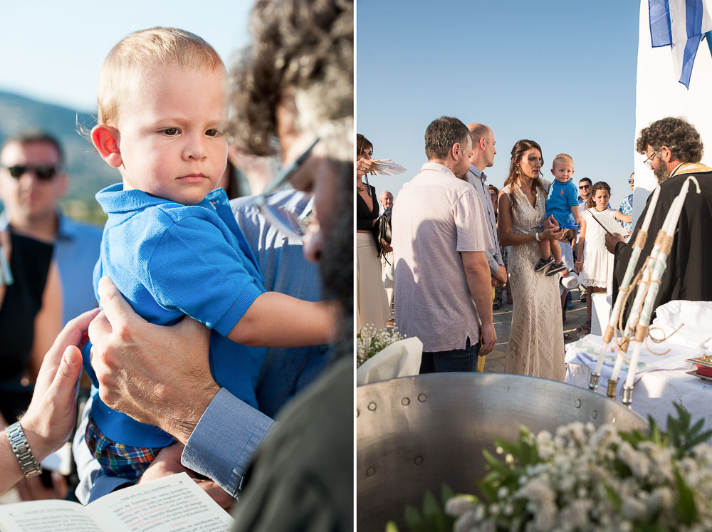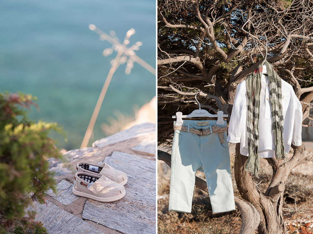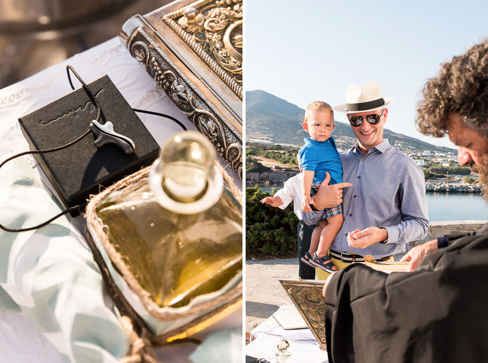 Είχα την χαρά να φωτογραφίσω τη βάπτιση του μικρού Φιλίππου-Λυκούργου στην Πάρο. Το μυστήριο τελέστηκε στo όμορφο ξωκλήσι του Αγίου Γεωργίου στο Πυργάκι στη νότια πλευρά του νησιού. Ένας τόπος ανεμοδαρμένος και άγριος εξαιτίας των βράχων και των απότομων πλαγιών, όμως η θέα και το βαθύ μπλέ του Αιγαίου σε αποζημιώνουν.