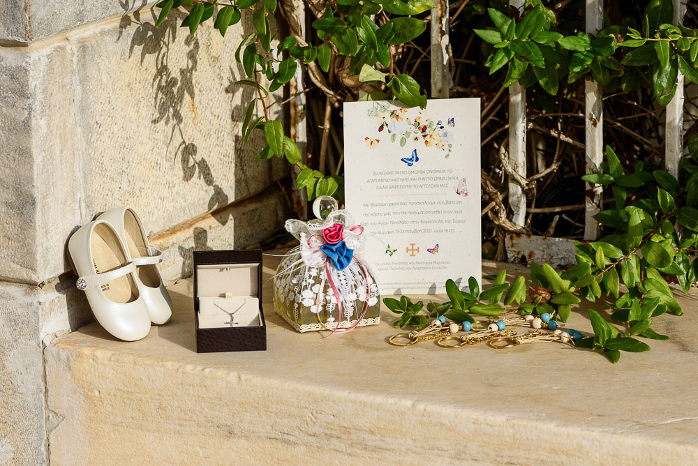 Ερμούπολη, Σύρου. Η πρωτεύουσα των Κυκλάδων με τα υπέροχα αρχοντικά της και την νεοκλασική αρχιτεκτονική. Μια νησιωτική χώρα διαφορετική, γεμάτη χρώμα, αρώματα ... και πολλά σκαλιά. Στα όμορφια σοκάκια αντηχούν ακόμα οι νότες του Βαμβακάρη και το φρέσκο καλαμάρι στα κάρβουνα συνοδεύει το ούζο. Σήμερα πηγαίνουμε στον Άγιο Νικόλαο της Ερμούπολης, σε ένα από τα σημαντικότερα αξιοθέατα του νησιού, στη συνοικία Βαπόρια για την φωτογράφιση της βάπτισης της μικρής Αναστασίας. Απολαύστε τις υπέροχες οικογενειακές στιγμές από την Ερμούπολή!
