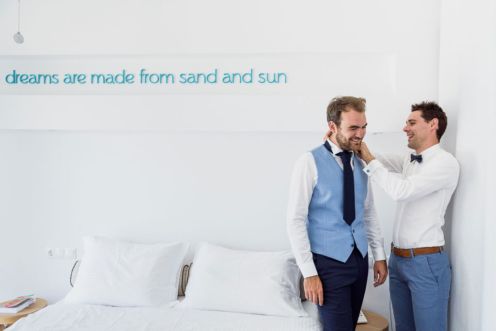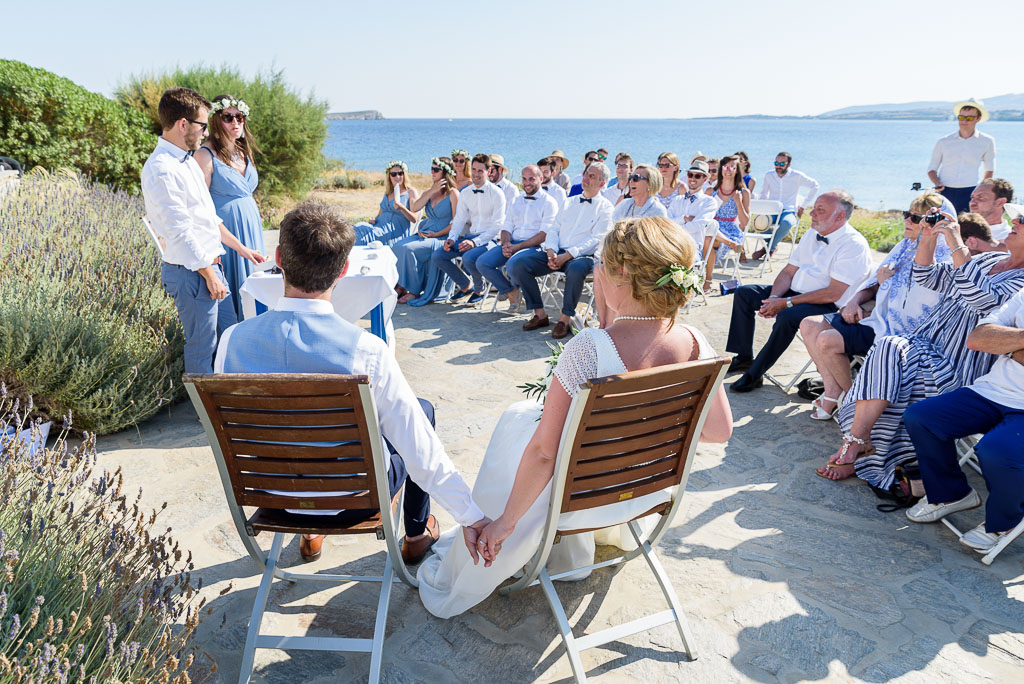 First time I met with those two incredible people was about a year ago when they visited Paros to arrange the details of their wedding day and to find a wedding photographer. You could sense and see immediately how much these two people love each other; the way they talked to each other, looked at each other, discussed about their wedding day on Paros, everything was full of love and respect. So was their Wedding Day as well -with both laughter and tears- a day of pure feelings, love and joy. The two came to Paros from Paris to get married at a small chapel by the blue Aegean sea, surrounded by their families and good friends. Despite the extreme hot weather everyone seemed relaxed and enjoyed the beautiful ceremony. The wedding party that followed had lots of games, food and dance. Thank you once again for choosing Cicada Studio for your wedding photography on Paros.